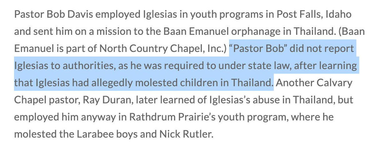 • A youth pastor (Anthony L. Iglesias) was not reported to authorities despite allegations of misconduct abroad.