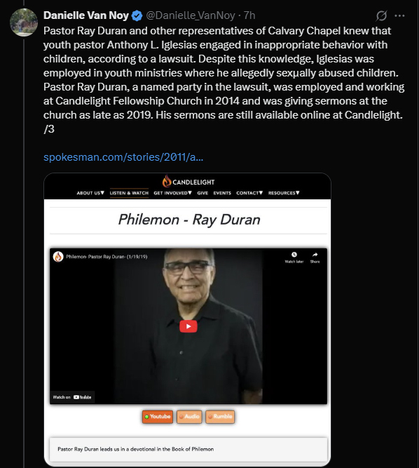 • Pastor Ray Duran, named in a related lawsuit, was later employed at Candlelight.