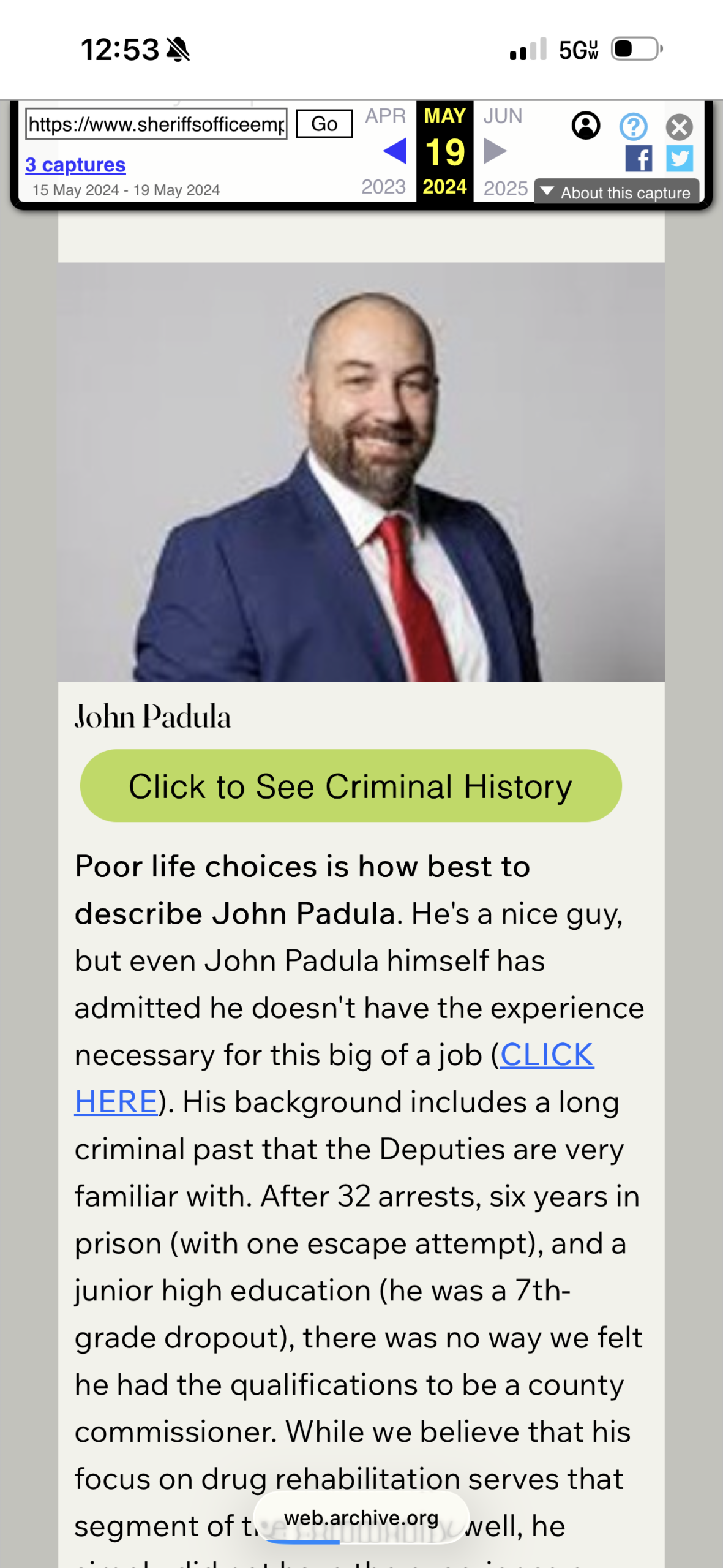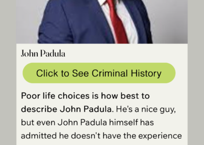 - Padula was labeled a convicted felon with dozens of arrests